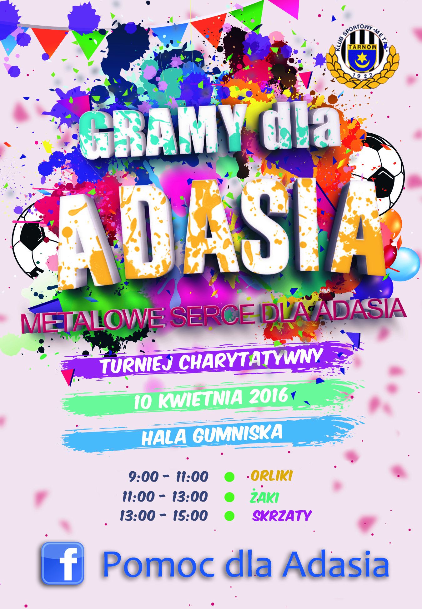 10 kwietnia 2016, na hali sportowej Gumniska w Tarnowie Klub Sportowy oraz Szkółka KS Metal Tarnów wraz z rodzicami i sympatykami organizuje turniej charytatywny „Metalowe serce dla Adasia”. Gramy całą ekipą i zapraszamy KAŻDEGO do gry dla naszego małego wojownika.