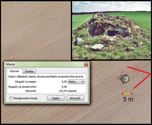 Być może ktoś już w jakiś sposób się tego pozbył, rozebrał to lub doszczętnie zasypał bo widać było, że pola na których się znajdował należały do kogoś i w dużej części były zagospodarowane - chyba czymś zasiane.