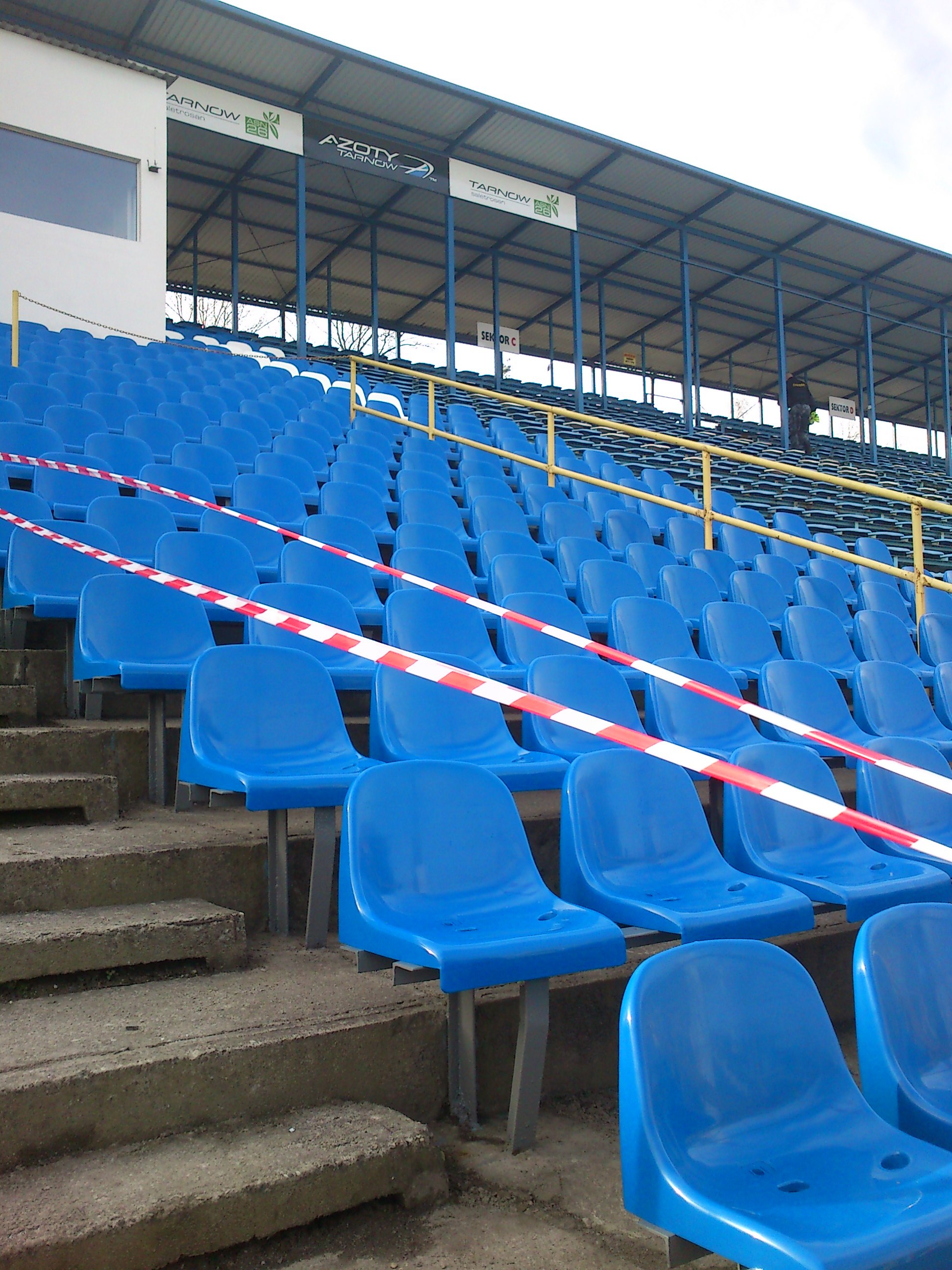 Po to zostały zamontowane nowe krzesełka, aby na mecz zostały odgrodzone taśmą, oraz pilnowane przez ochroniarza, coby któryś z kibiców nie raczył skorzystać z "ich obecności" na trybunie