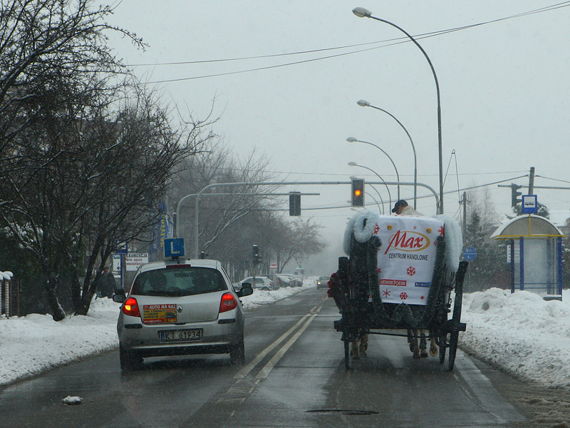 Niedzielny wieczór odwożę Teściową, Matkę i Siostrę do domu bo pogoda pod psem, wyjeżdżam z Wojska Polskiego na Starodąbrowską, skręcam w kierunku tymczasowego ronda w lewo, z prawej przepuszczam jedno auto jadące lewym pasem, widzę drugie z jednym tylko świecącym reflektorem na prawym pasie więc włączam się na lewy pas. A ten idiota - szare kombi z bagażnikiem trumną na dachu i numerach KR... - już na skrzyżowaniu zmienia pas na lewy więc musi wyhamować tuż za moimi tylnym zderzakiem i pali mi długimi (tylko z jednego reflektora) po lusterkach. Zmieniam pas na prawy i gdy się zrównujemy pukam się znacząco w czoło a w tego jakby diabeł wstąpił, rzuca się na fotelu, szarpie za pasy, łapie jakiś przedmiot z tylnego siedzenia... Bałem się sprawdzać co mu odbiło skręcam więc na rondzie w prawo, a krakus za mną z lewego pasa, dalej na Sitki jedzie za mną. Ja prosto w Słowackiego a ten z prawego skręca w lewo w Piłsudskiego. Może był "tylko" niezrównoważony a może wypity lub naćpany. Na wszelki wypadek zadzwoniłem na 112 i zgłosiłem takie zdarzenie.