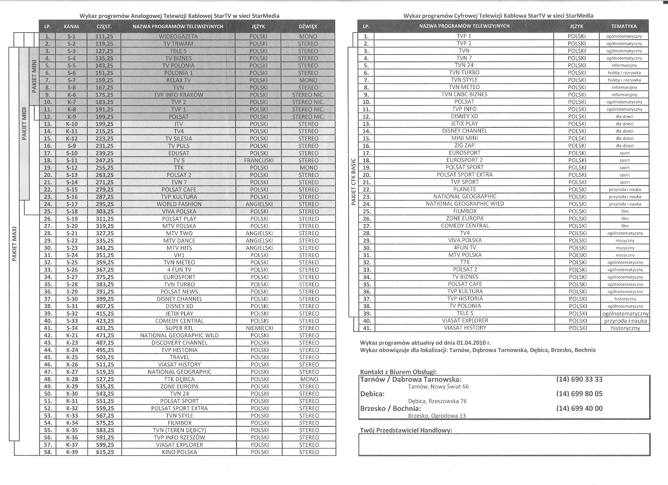 Mam dosyć nietypowy problem. Potrzebuje poznać częstotliwości na jakich działają kanały w dawnej TTK. Jak ktoś ma możliwość to proszę o podanie (chociaż zakresu). Chodzi mi o pakiet, w którym jest około 50 programów. Niestety więcej informacji nie znam.
