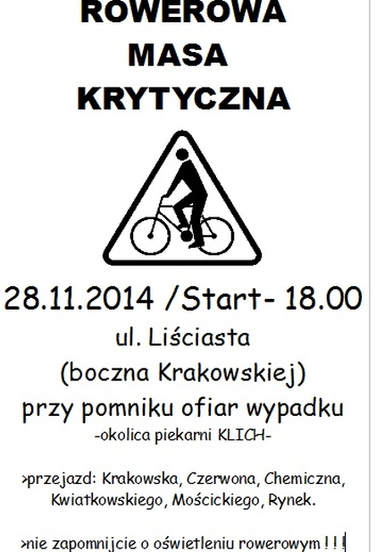 Zaproszenie na poświąteczny rozruch rowerowy czyli kolejna "Masa krytyczna"