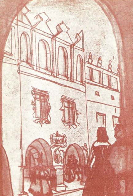 Załączam dwa rysunki Juliana Klimka, jak wyobrażał sobie odsłonięte po wyburzeniu kamienic mury miejskie.