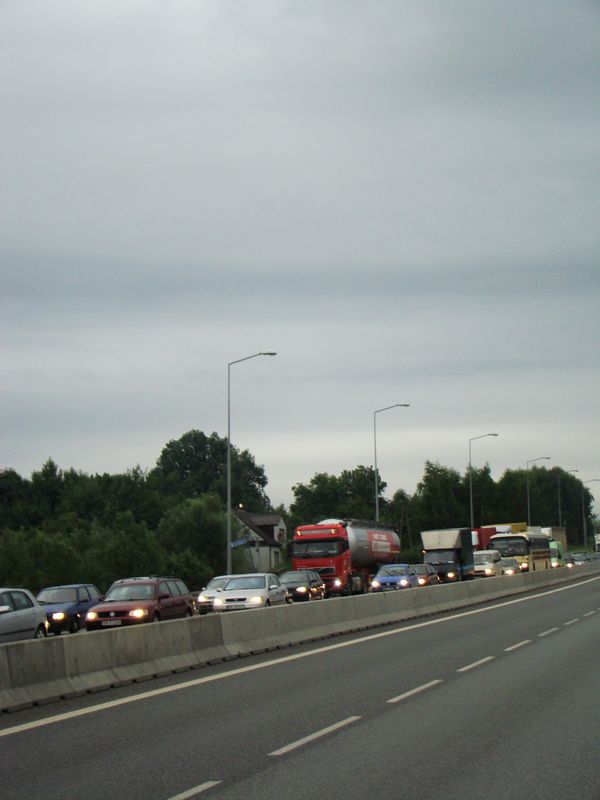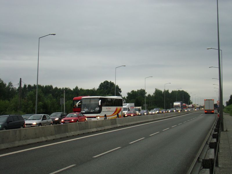 CZWARTEK - światła włączone - korek na głównej na kilka kilometrów.