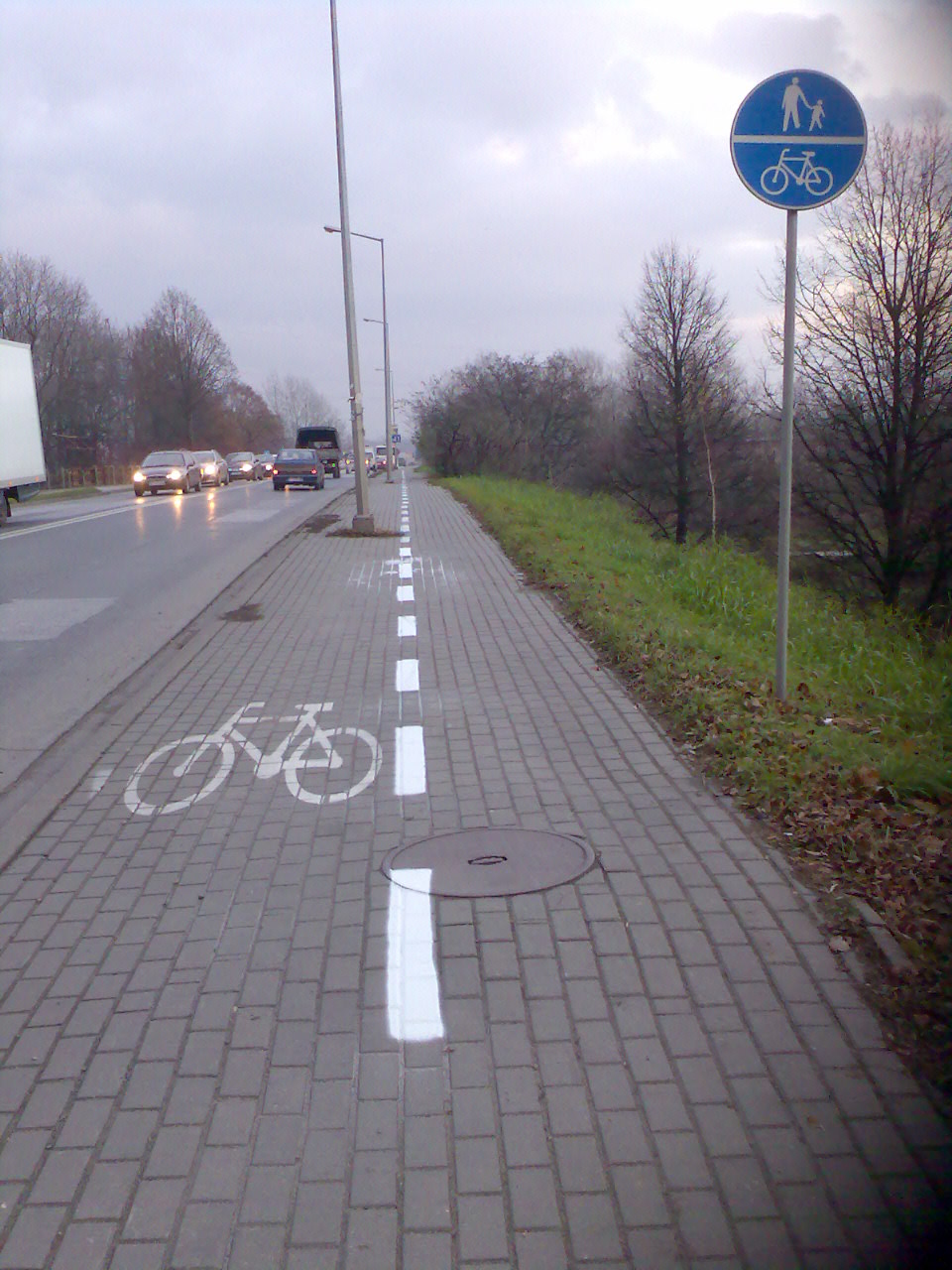 A przechodząc do tematu. Czy nie można po prostu na pewnym odcinku puścić tam ścieżki po prawej stronie ciągu? Pytam serio. Może jakieś przepisy tego zabraniają.