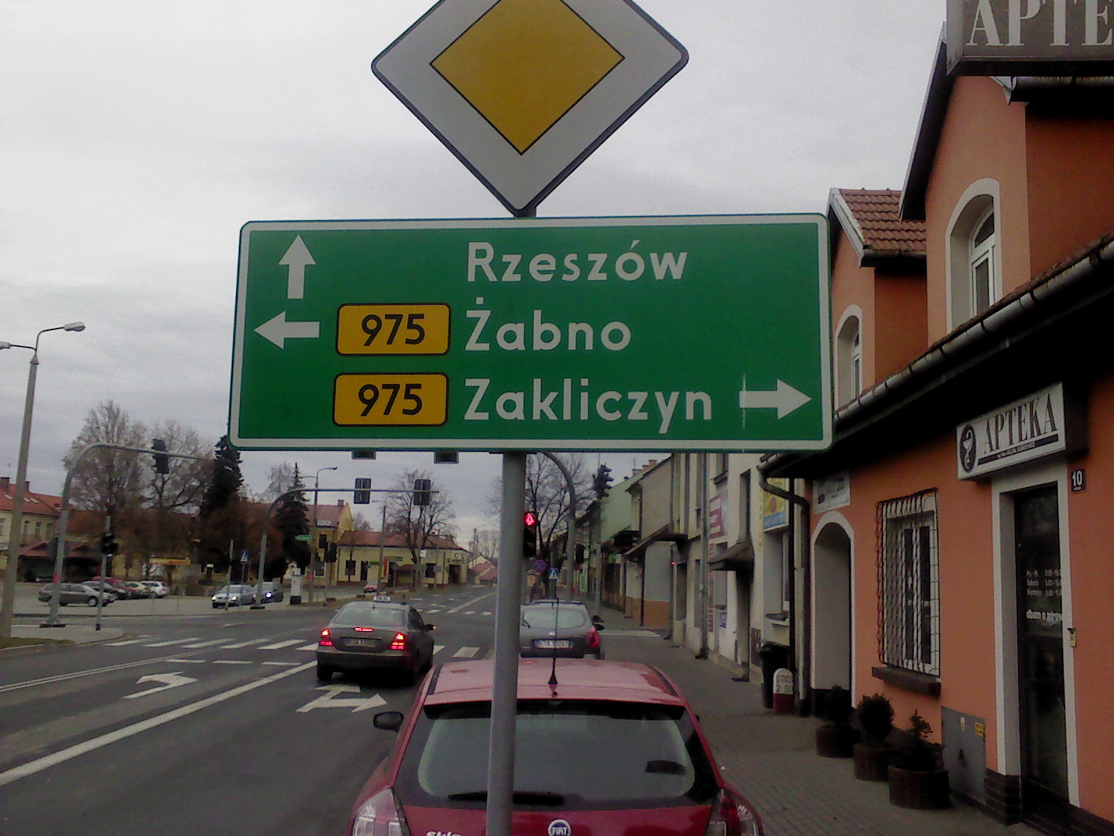 Bo ZDW Kraków ma tendencję znakowania do najbliższego skrzyżowania dróg wojewódzkich lub wojewódzkiej z krajową... dlatego wszędzie mamy Zakliczyn, to i tak dobrze, że w drugą stronę jest Żabno, bo np. na DW964 od Niepołomic są na nowych znakach... Biadoliny Radłowskie :-x
