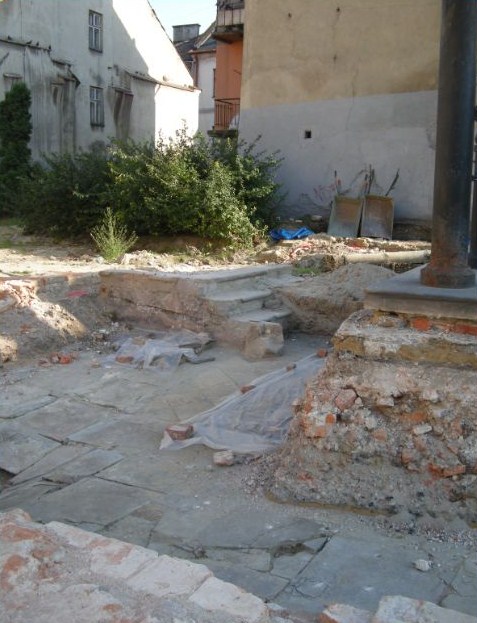 Zmieniając nieco temat: wokół bimy odsłonięto zachowane mury ze schodami i oryginalną kamienną posadzką z XVII w. Mam nadzieję, że tego po prostu nie zasypią.