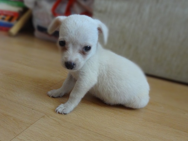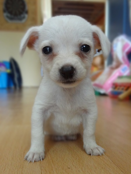Skoczka ma ok. 1,5 roku. Niewielka, śliczna suczka, która swe imię zawdzięcza wielkiej ruchliwości. Skoczka umie chodzić na smyczy. Do szczęścia brakuje jej jedynie kochającego człowieka i długich spacerów, gdyż obecnie zamieszkuje małą, zagraconą komórkę.