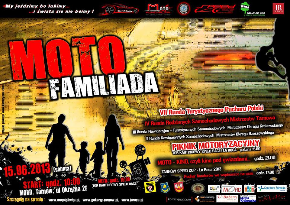 Nie jest jednak łatwo zostać Mistrzem, dlatego wszystkich, którzy dopiero rozpoczynają przygodę z motorowymi sportami popularnymi, zapraszamy na Moto Familiadę 2013. Ci, którzy koncentrują się na tym, co za oknem samochodu, będą się fantastycznie bawić na imprezie. Natomiast tych, którzy wolą wodzić "palcem po mapie", nie może również zabraknąć. Będzie można się sprawdzić z łamigówkami na malowniczej trasie regionu tarnowskiego.