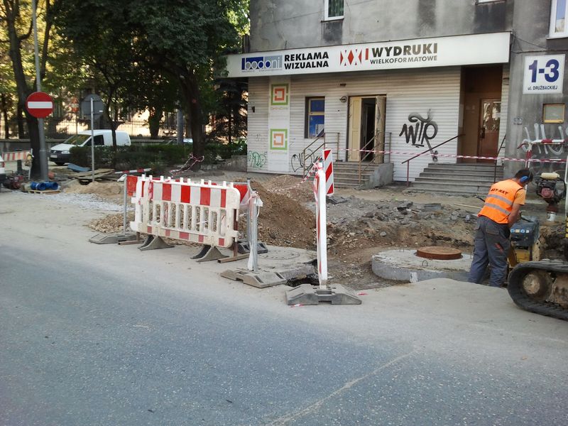 W piątek były dwa kawałki jezdni - od Limanowskiego do Oftaldentu (po stronie północnej) i potem od Oftaldentu do skrzyżowania z Drużbackiej (po stronie południowej), wykorytowane, położona podbudowa, czeka na następne warstwy zakończone asfaltem. Czyli roboty chylą się ku końcowi... Pewnie w październiku tego nie zrobią, ale w listopadzie pewnie już tak.