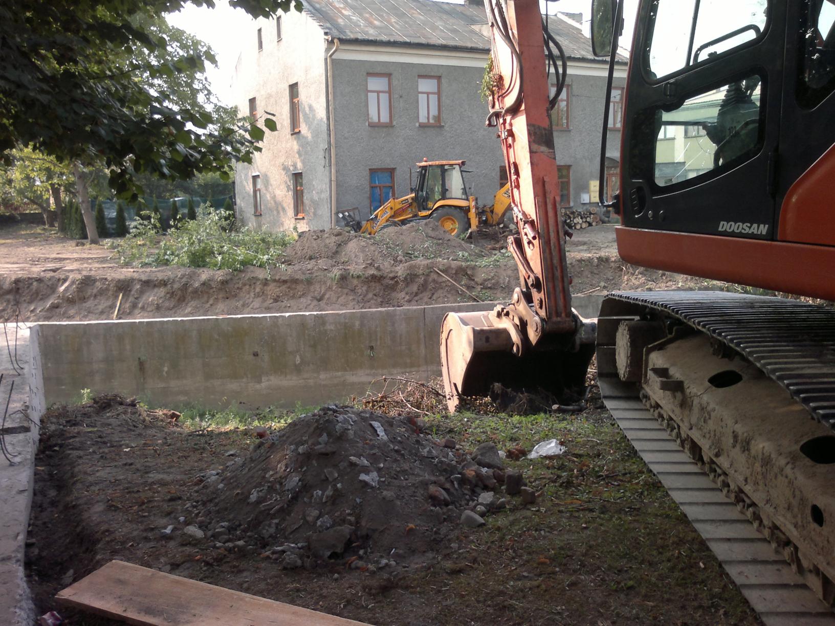 - od Łaziennej robione jest ogrodzenie posesji i wyrównywany nasyp nad murem