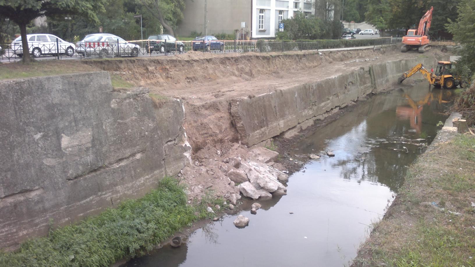 - rozburzona ściana wzmacniająca na odcinku 5m od strony ulicy Łaziennej - pięknie grał młot pneumatyczny koło południa