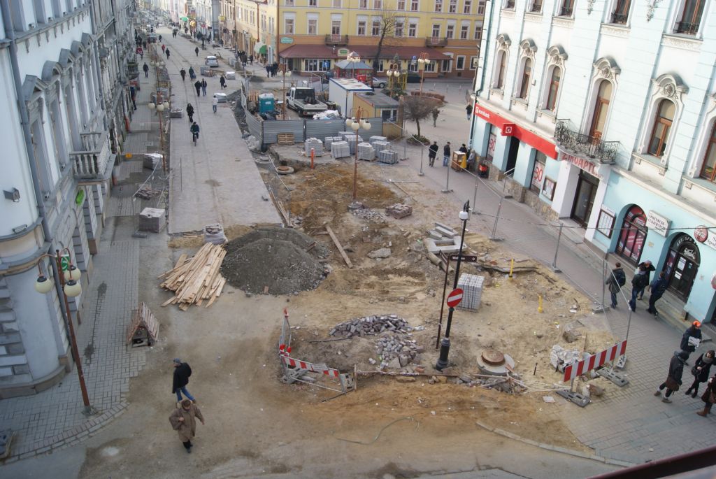 Tak przy okazji idąc ulicą zauważyłem totalny bajzel na Krakowskiej. Porozwalane palety, resztki kostki, materiały wykopane z ziemi i inne syfy.