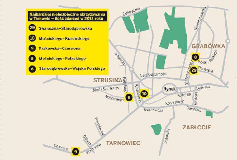 Najbardziej niebezpieczne skrzy¿owania w Tarnowie w 2012r.
