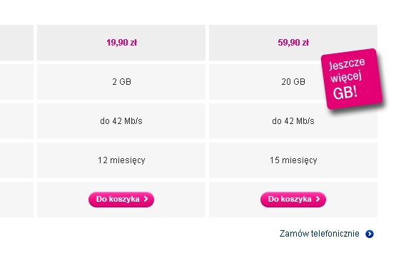 t-mobile ma dobra oferte na internet GSM dla kogos kto korzysta sporadycznie 2 GB i dla kogos kto GSM traktuje jako net podstawowy 20 GB