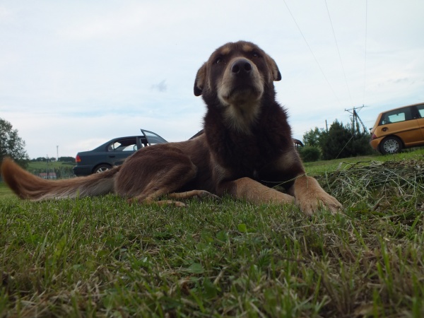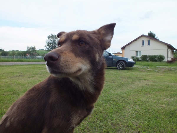 Pies jest młody, ok. 1,5 - roczny. Zna podstawowe komendy, ładnie chodzi przy nodze, jednak boi się gwałtownych ruchów. W stosunku do innych psów nie wykazuje agresji.
