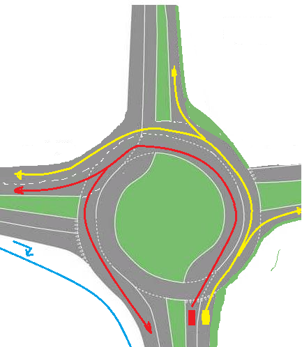 Problem jest w opuszczaniu klasycznego skrzyżowania z ruchem okrężnym z lewego pasa ruchu.