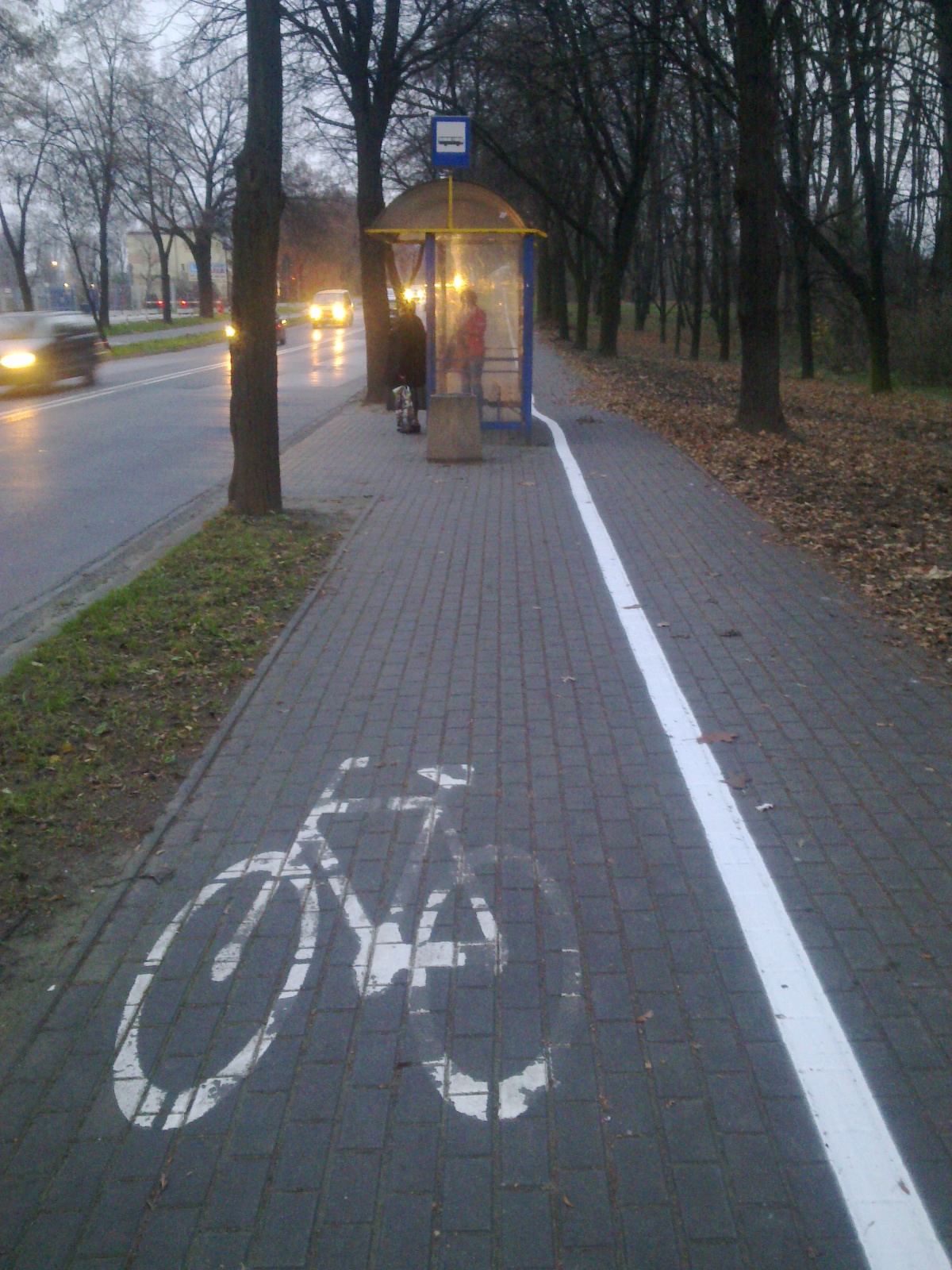 Jak można robić takie buble? No wytłumaczcie mi, jak? Normalnie mnie krew zalewa! Dochodzę do wniosku, że na to nie było żadnego projektu, tylko zostało to wymalowane na zasadzie hop siup. Dramar. Linia pomalowana na piktogramie, część rowerowa prosto w przystanek, słupy na części rowerowej... A co do powyższego zdjęcia, to może poczekają jak (i tak już szybko starty jak na swój wiek) piktogram zatrze się do końca i pomalują go z drugiej strony. Jedyne sensowne rozwiązanie jak dla mnie ...