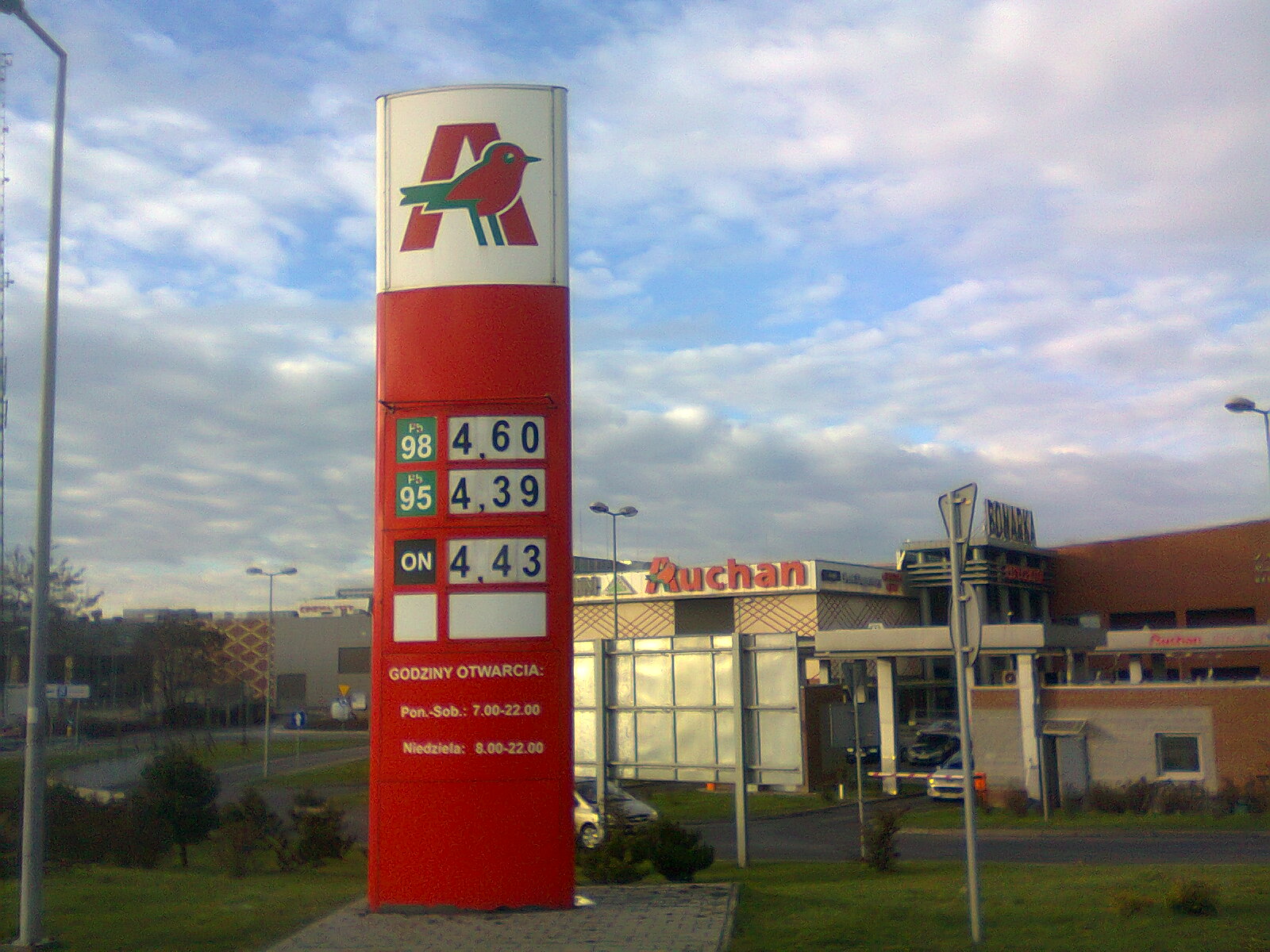 Auchan Kraków Bonarka dzisiaj: ES95 4,49, ON 4,51.
