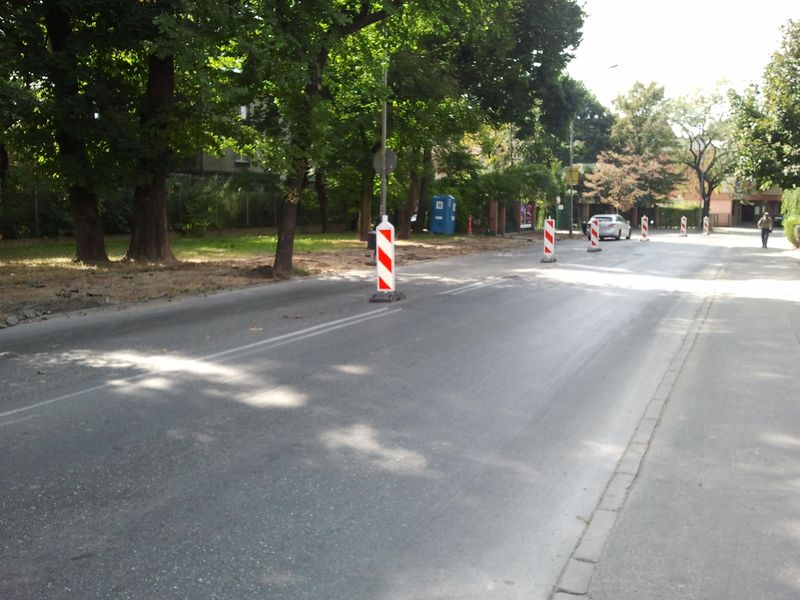 Na Narutowicza brygada w sile dwóch osób koparki i samochodu z kierowcą wywożącego stary materiał rozbierała chodnik po stronie południowej od strony ul. Limanowskiego w kierunki Wita Stwosza, sam objazd jest bardzo problematyczny dla pojazdów dłuższych typu autobusy.