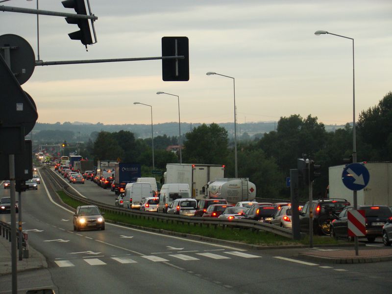 CZWARTEK - światła włączone - korek na głównej na kilka kilometrów.