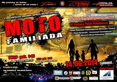 W sobotę 14 czerwca 2014 r serdecznie zapraszamy wszystkich chętnych pasjonatów aktywnej turystyki samochodowej oraz całe rodzinny do „Polskiego bieguna ciepła”, aby wziąć udziału w II Ogólnopolskiej Rodzinnej Imprezie Motoryzacyjnej "Moto Familiada 2014” w ramach, której odbędą się: VIII Runda Turystycznego Pucharu Polski, IV Runda Pucharu Polski Południowej A4, I Runda Rodzinnych Samochodowych Mistrzostw Tarnowa oraz I Runda Nawigacyjno – Turystycznych Samochodowych Mistrzostw Okręgu Krakowskiego.